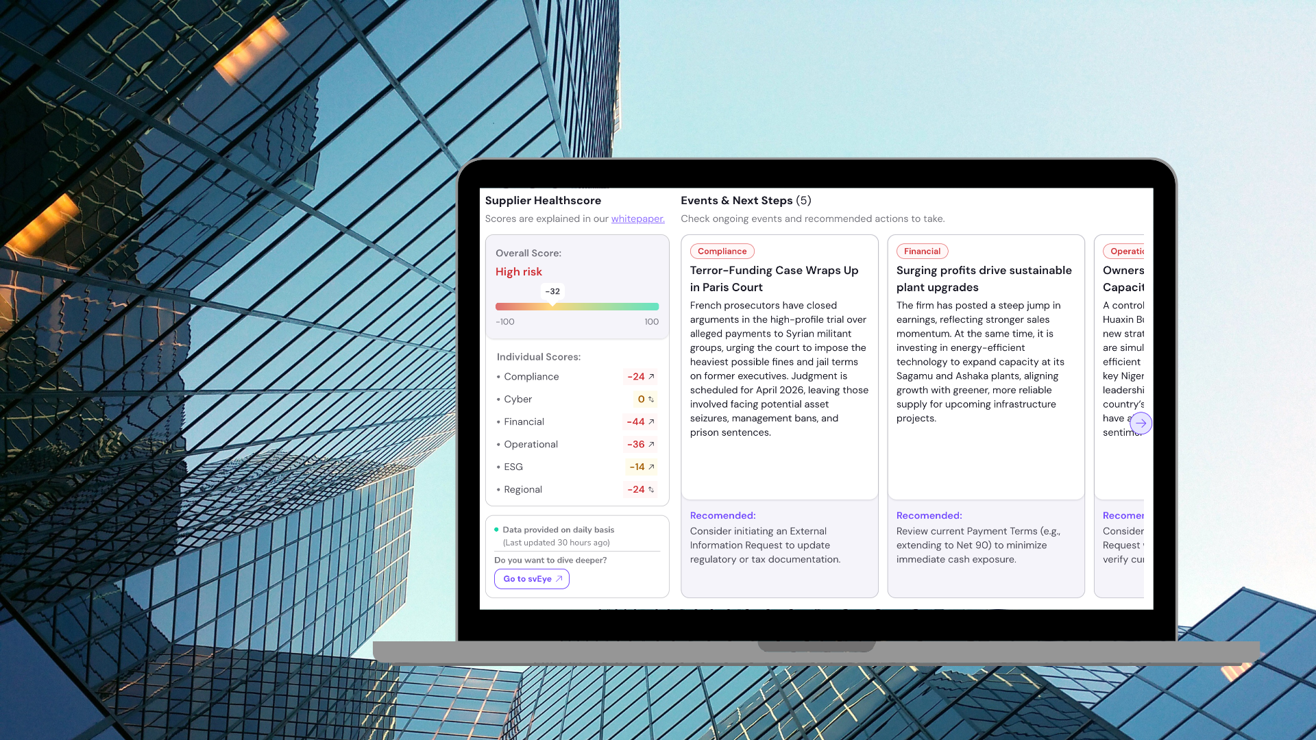 svEye™ combines customer screening, due diligence services, media monitoring software, and market intelligence to deliver actionable business insights and superior risk detection.