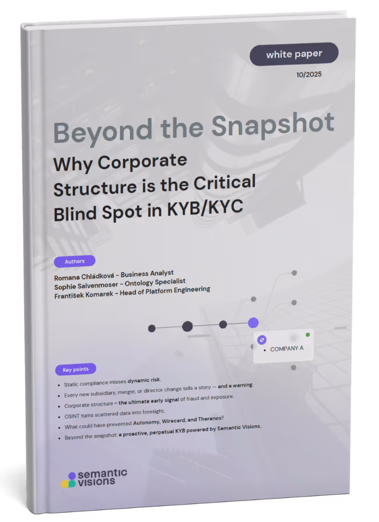 Static checks miss dynamic risk. This white paper shows how continuous, event-driven monitoring of corporate structure turns KYB/KYC from a compliance checkbox into a proactive risk radar.